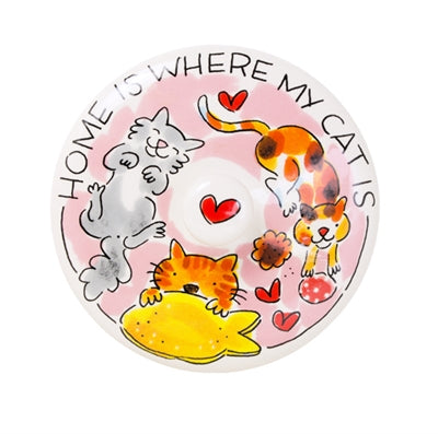 De Blond Amsterdam Voorraadpot Kat 16X16X22,5 cm is een aardewerken pot in Blond-stijl om de brokjes of snoepjes van jouw dier in op te bergen. Deze leuke voorraadpot vrolijkt gelijk de hele ruimte op! De aardewerken pot is uitgevoerd in de bekende Blond Amsterdam-stijl, met een vrolijke opdruk van diverse katten en leuke tekstjes. De voorraadpot is wit met een roze achtergrond en rode band. Ook op het deksel is een leuke opdruk geplaatst. De voorraadpot is magnetron en vaatwasser bestendig en mag niet ontbreken in elk dierenhuishouden!