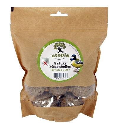 De Utopia Mezenbollen Zonder Net 8 stuks is aanvullend voer voor tuinvogels, voor voldoende voedingsstoffen en zonder net. Ondersteun de vogels in jouw tuin het gehele jaar rond op milieuvriendelijke wijze! Deze smakelijke mezenbollen zijn ideaal aanvullend voer om de vogels in jouw tuin gedurende elk seizoen van voldoende voedingsstoffen te voorzien. Door koude winters en verstedelijking is het voor vogeltjes als mezen, mussen, roodborstjes en andere vogels steeds lastiger om voldoende voedsel te vinden. Hang deze mezenbollen op voor de vogels in jouw tuin of biedt ze aan in een feeder of voerschaal om te zorgen dat de vogels altijd voedsel tot hun beschikking hebben. Deze bollen komen zonder net, zonder plastic-impact op het milieu dus!